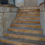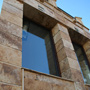 Exteriores: Travertino Oro envejecido, banda libre x30x2cm.